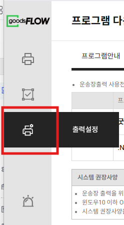 ① 왼쪽메뉴 [출력설정] 버튼을 누릅니다.