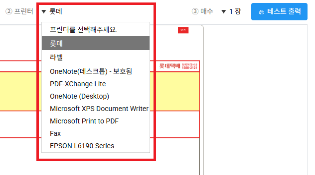 ⑤ 송장을 출력 할 프린터를 선택 합니다.