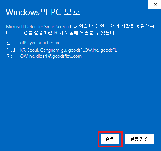 ⑦ 다운받은 [gfPlayerLauncher]를 실행 합니다.