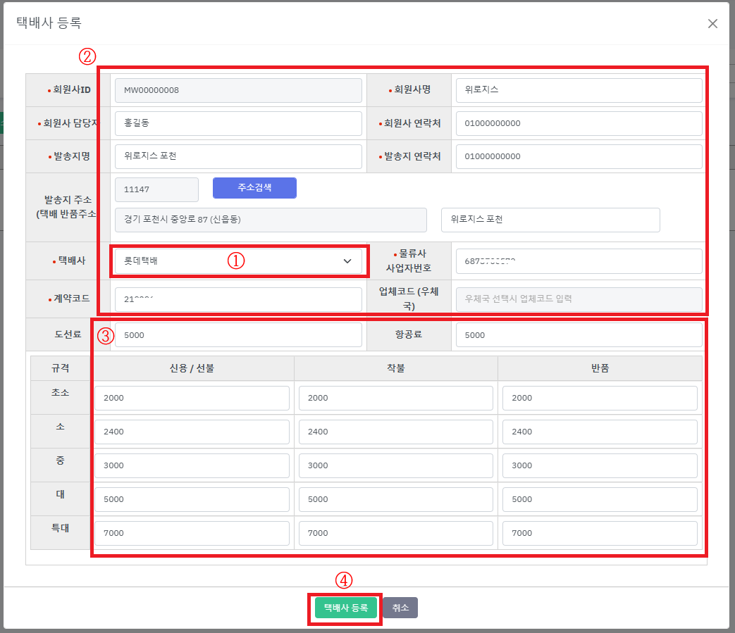 ④ 택배사가 여러개인 경우 각 택배사마다 연결을 진행 해 주시기 바랍니다.