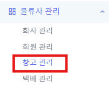 ① 왼쪽메뉴 [물류사관리] => [창고관리]를 클릭 합니다.