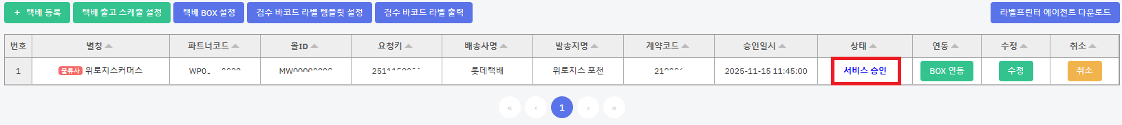 ⑨ 상태가 서비스승인 으로 바뀐 것을 확인 합니다.