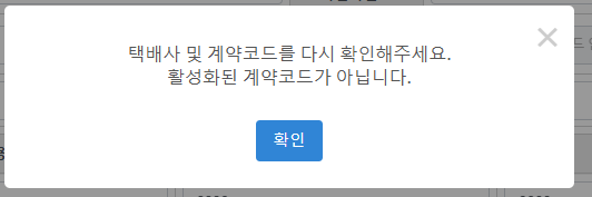 ① [수정]버튼 눌러 계약코드 등 계약 정보가 바르게 기입 되었는지 확인 후 다시 시도 합니다.