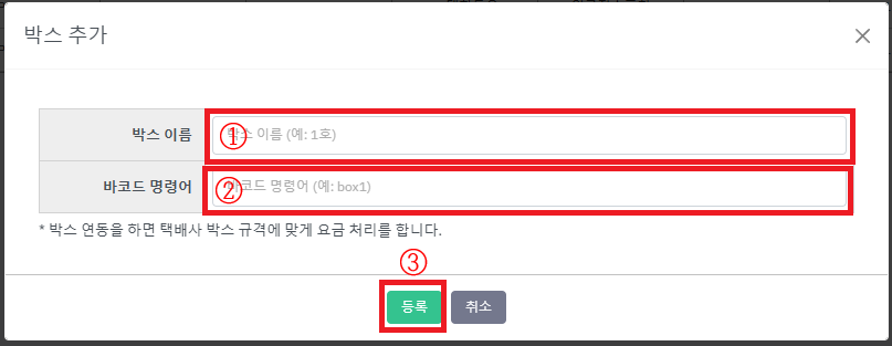 사용하시는 박스바코드가 있다면 기입해 주시면 됩니다.