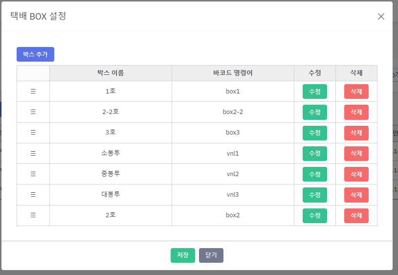 ⑦ 등록된 박스를 리스트에서 확인 할 수 있습니다.