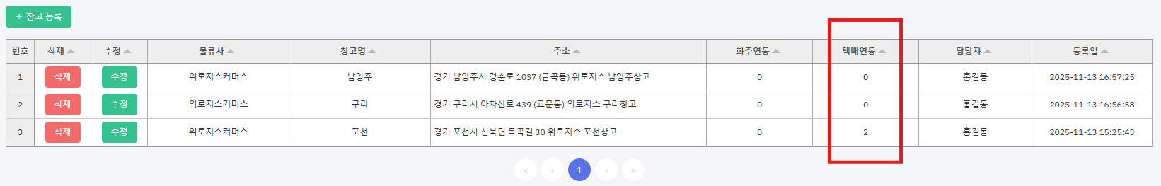 ③ 창고에 연결된 택배사 개수를 리스트에서 확인 할 수 있습니다.