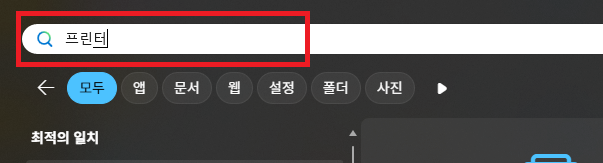 ② 검색란에 {프린터}라고 기입 하고 {Enter}를 누릅니다.