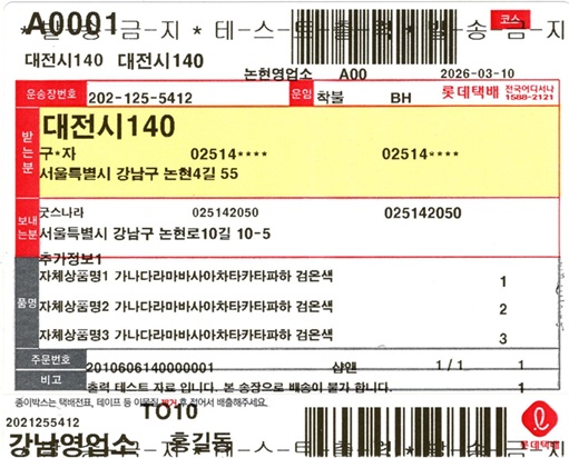 ⑦ 테스트송장이 정상적으로 출력된 것을 확인 합니다.