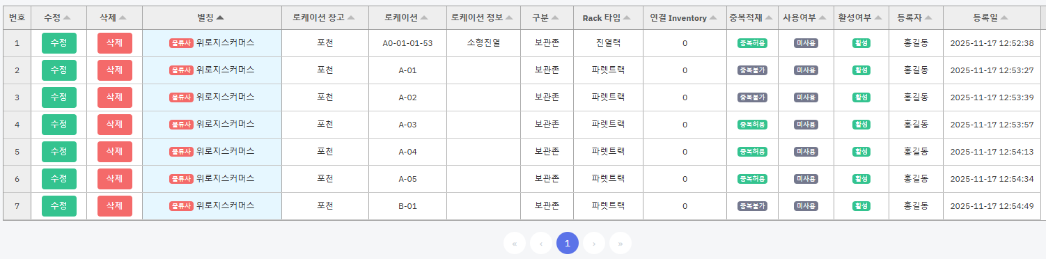 4) 등록된 로케이션 정보를 리스트에서 확인 할 수 있습니다.