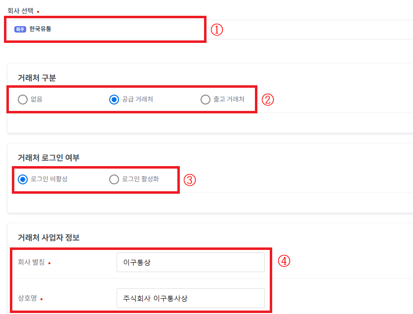 ③ 거래처 로그인 여부를 선택합니다.