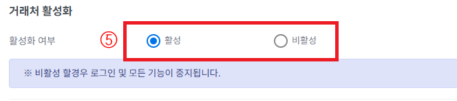 [로그인활성화]를 선택 하시면 거래처 회원정보 입력 필드가 나타납니다.