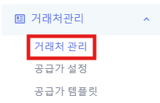 1) 왼쪽메뉴 [거래처관리] => [전체거래처관리]를 클릭 합니다.