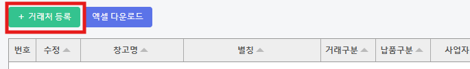 창고에 입/출고되는 업체만 등록해 주세요. 위탁업체는 등록하지 마세요.