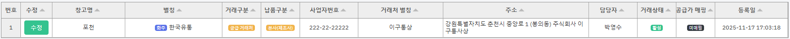 4) 등록된 거래처를 리스트에서 확인 할 수 있습니다.