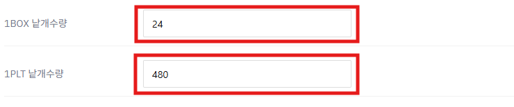 ② 1 PLT(파렛트) 낱개 입수를 기입합니다.
