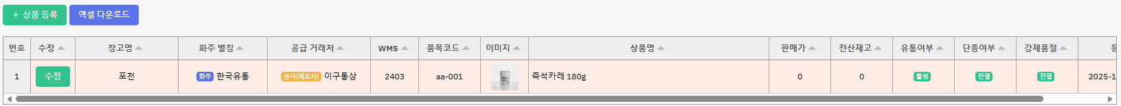 창고에서 입/출고되는 상품만 등록해 주세요.