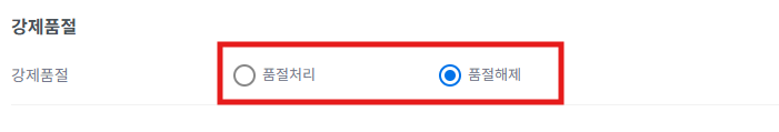 ① 강제품절은 [품절해제]를 선택해 주세요.