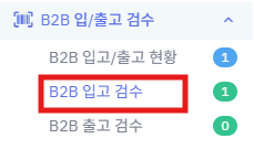 ① 왼쪽메뉴 [B2B 입/출고 검수] => [B2B 입고 검수]를 클릭 합니다.