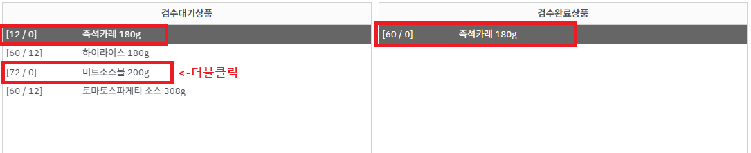 ⑫ 나머지 상품들도 {더블클릭}하여 검수해 줍니다.