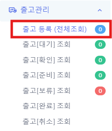 1) 왼쪽메뉴 [출고관리] => [출고등록(전체조회)]을 클릭 합니다.
