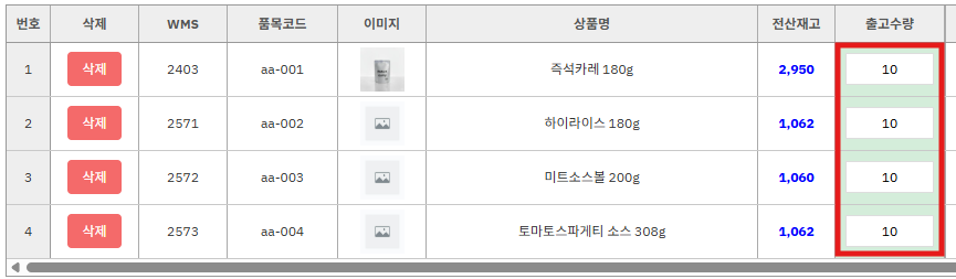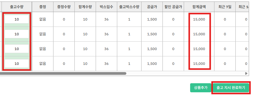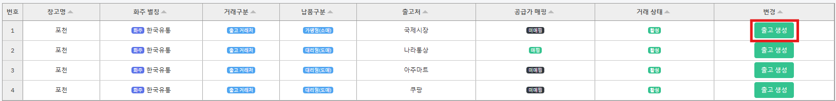 출고 하고자하는 출고처의 [출고생성] 버튼을 누릅니다.