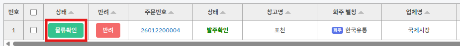 ② 등록된 출고지시가 리스트에 나타 납니다. [물류확인] 버튼을 누릅니다.