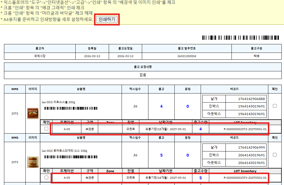 ④ 지시서의 로케이션과 출고수량을 확인하고 상품을 준비(피킹) 합니다.