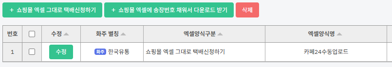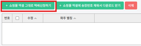 ② [+쇼핑몰엑셀그대로택배신청하기] 버튼을 누릅니다.