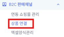 ① 왼쪽메뉴 [B2C판매채널] => [상품연결]을 클릭 합니다.