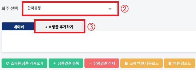 ③ [+쇼핑몰추가하기] 를 누릅니다.