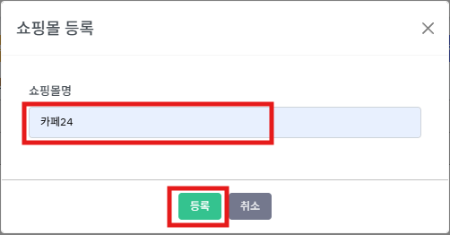 ④ 쇼핑몰 이름을 기입하고 [등록] 버튼을 누릅니다.