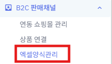 ① 왼쪽메뉴 [B2C판매채널] => [엑셀양식관리]를 클릭 합니다.
