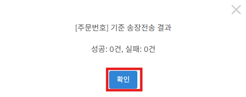 step5. 신규송장이 출력되면 주문리스트의 송장번호는 신규송장번호로 바뀝니다.