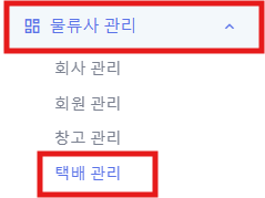① 왼쪽메뉴 [물류사관리] => [택배관리]를 클릭 합니다.