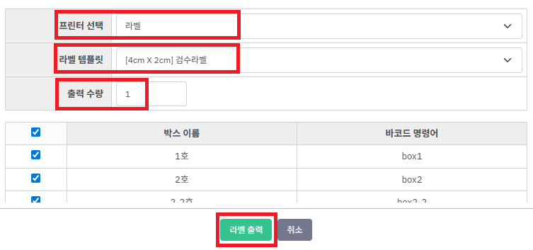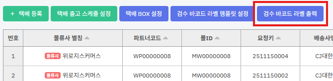 [검수바코드라벨] 출력방법은 [검수바코드라벨출력] 에서 자세히 설명합니다.