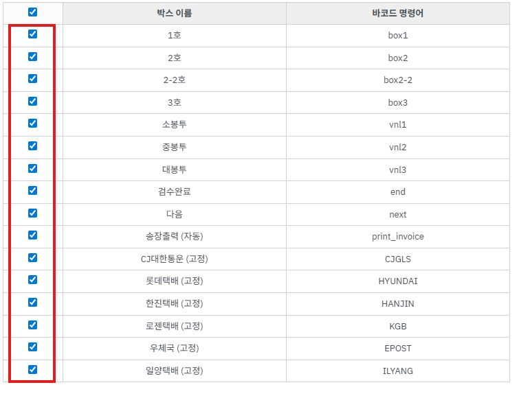 ① 박스이름 : 등록하신 박스의 이름입니다. 검수 시 스캔하면 해당 박스를 생성 합니다.