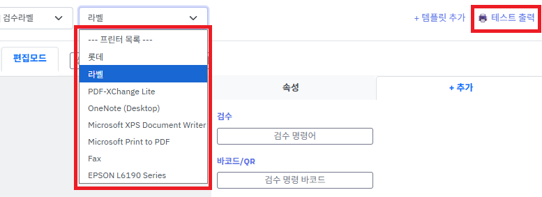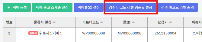 ① [검수바코드라벨템플릿설정] 버튼을 누릅니다.