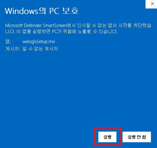 ④ 다운받은 [welogisSetup] 을 실행합니다.