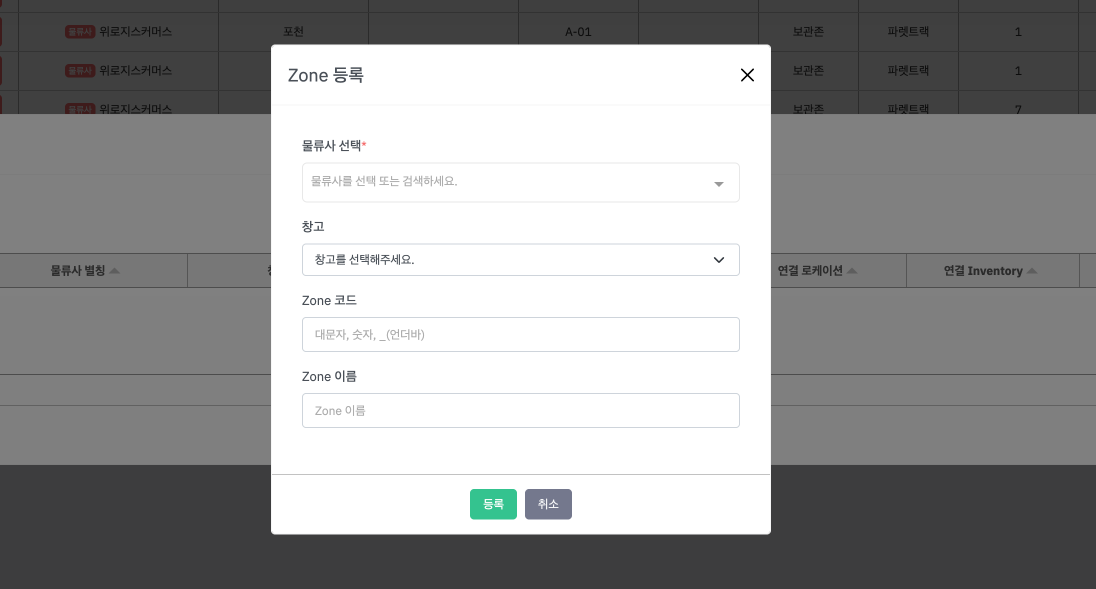 “Zone(존)” 설정은 창고를 논리적으로 구역화해서 출고·피킹·재고관리 효율을 높이는 구조입니다.
