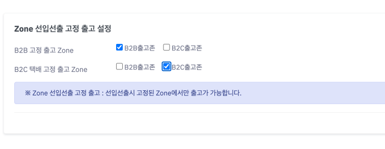 B2B / B2C 각각 다른 Zone을 선택하여 재고 분리 운영