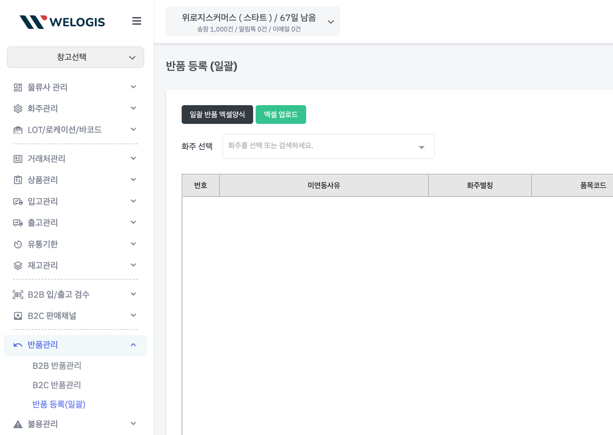 엑셀 업로드를 통해 대량 반품을 빠르게 등록할 수 있습니다.
