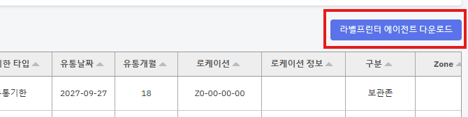 ② 오른쪽 상단 [라벨프린터에이전트다운로드] 버튼을 누릅니다.