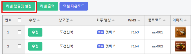 ① [라벨템플릿설정] 버튼을 누릅니다.