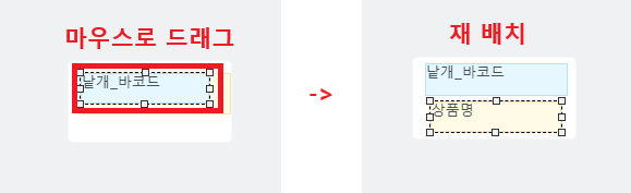 ⑧ 라벨지 영역에 클릭한 컴포넌트가 레이어 형식으로 추가 됩니다.